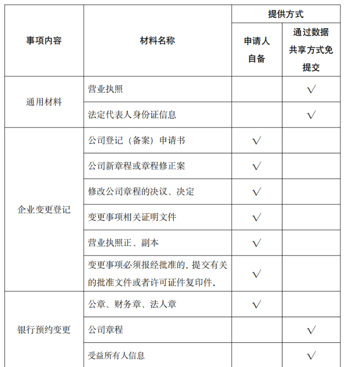 “企业变更”6项联合办理事项:包括营业执照、印章、社会保险、税务、住房公积金单位缴存登记、银行基本账户。
