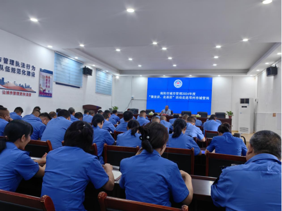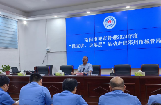 为深入贯彻落实习近平法治思想,进一步提升城市管理执法人员法治素养和执法能力,扎实推进邓州市城市管理局服务型行政执法建设。2024年6月11日,邓州市城市管理局组织开展“微宣讲、走基层”活动,邓州市城市管理局执法大队中层以上及业务骨干100余人参加。