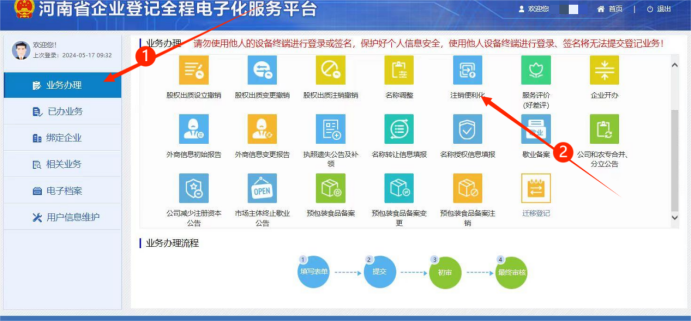 二、在业务办理页面找到“注销便利化”端口,点击进行业务办理,如下图所示: