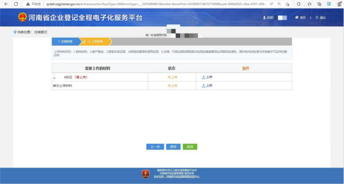 注:其他材料中可上传营业执照自行销毁承诺书,注销登记核准后自行销毁营业执照,就不用去经营所在地的市场监管所缴回要注销的营业执照正副本了。