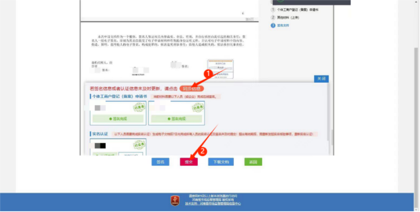 2.若已签名系统还没有同步更新,需要耐心等待或点击右上角橙色字体“同步信息”,完成签名。若一直未收到签名业务的推送可点击签名中的“重新发起”,完成签名。
