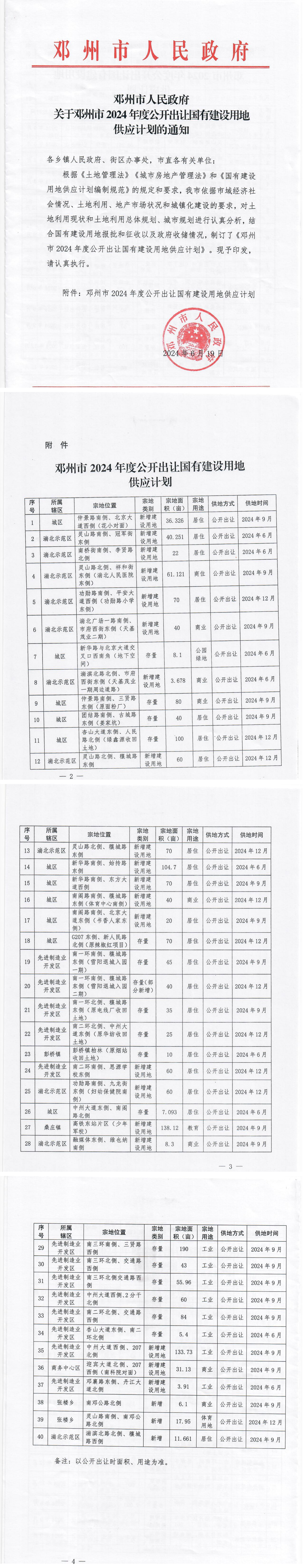 邓州市人民政府关于邓州市2024年度公开出让国有建设用地供应计划的通知