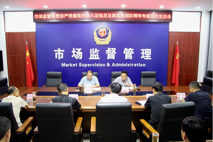 7月12日下午,邓州市市场监管局召开严格落实中央八项规定及其实施细则精神专题民主生活会。市委第十二指导组组长阮保平及市场监管局全体班子成员、部分副科级干部参加会议。党组书记、局长李富龙同志主持会议。