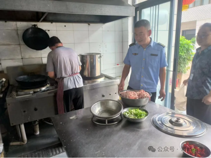 “大家一定要保障受灾群众的食品安全,不要提供冷荤凉菜等高风险食品,不要使用洪水浸泡过的食品及原辅料、半成品和病死、淹死的牲畜家禽或被洪水浸泡污染发霉变质的食品加工制作食物。”检查现场,市场监管局工作人员对供餐人员强调道。