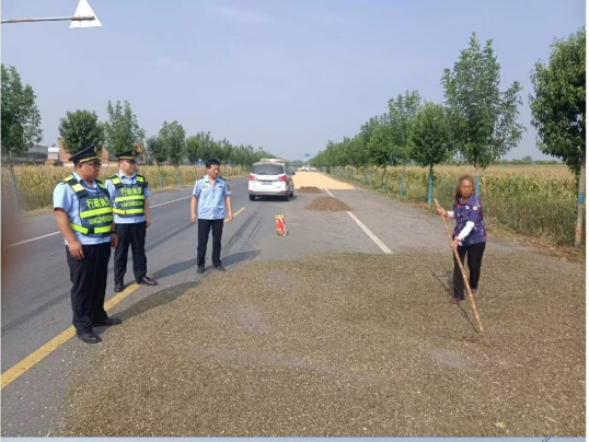 孟楼镇综合行政执法大队联合交通运输局执法大队,针对省道晒粮问题开展专项联合检查。