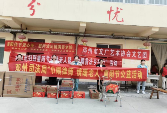 金秋送爽丹桂香,又是一年重阳至。为弘扬中华民族尊老敬老的传统美德,邓州市司法局联合市妇联在都司镇幸福大院举办了一场别开生面的“巾帼律师、情暖重阳”公益活动,用实际行动诠释了社会对老年人的深切关怀。河南花洲律师事务所赵锐、穆玉新、胡童、廖福兰和河南千京律师事务所刘柯柯等律师参加了活动。
