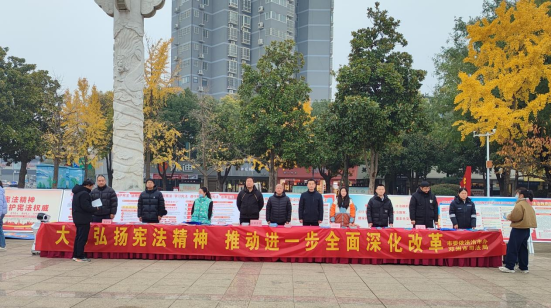2024年12月4日是第十一个国家宪法日,为大力加强宪法宣传教育,强化宪法意识,弘扬宪法精神,维护宪法权威,推动宪法全面贯彻实施,12月4日,中共邓州市委全面依法治市委员会办公室、邓州市司法局牵头,市政法委、市人大法工委、市公安局、市检察院、市法院等守法普法协调小组成员单位在古城广场开展了以“大力弘扬宪法精神,推动进一步全面深化改革”为主题的集中宣传活动。