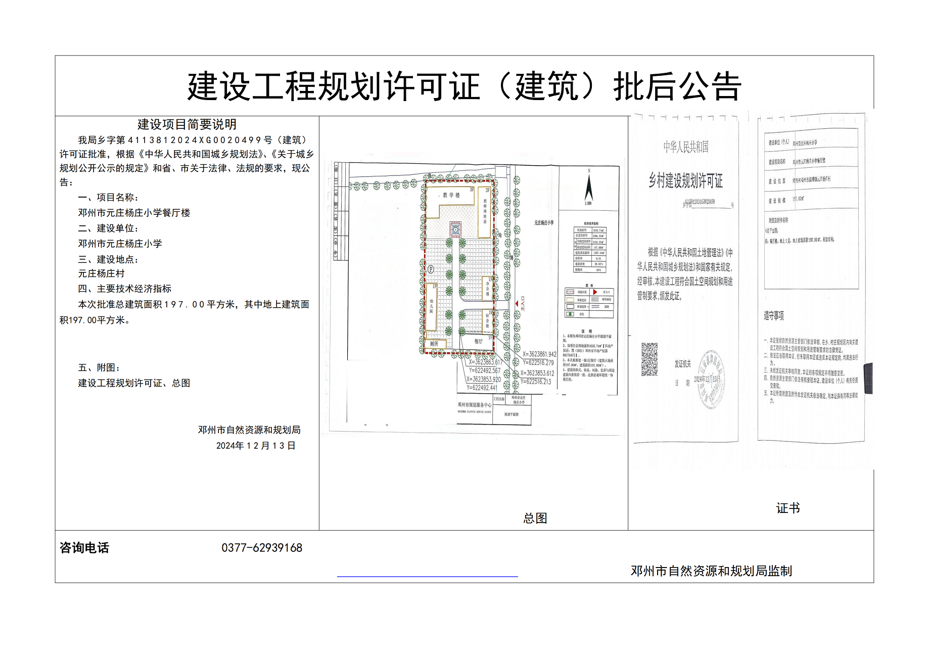 邓州市元庄杨庄小学餐厅项目批后公示