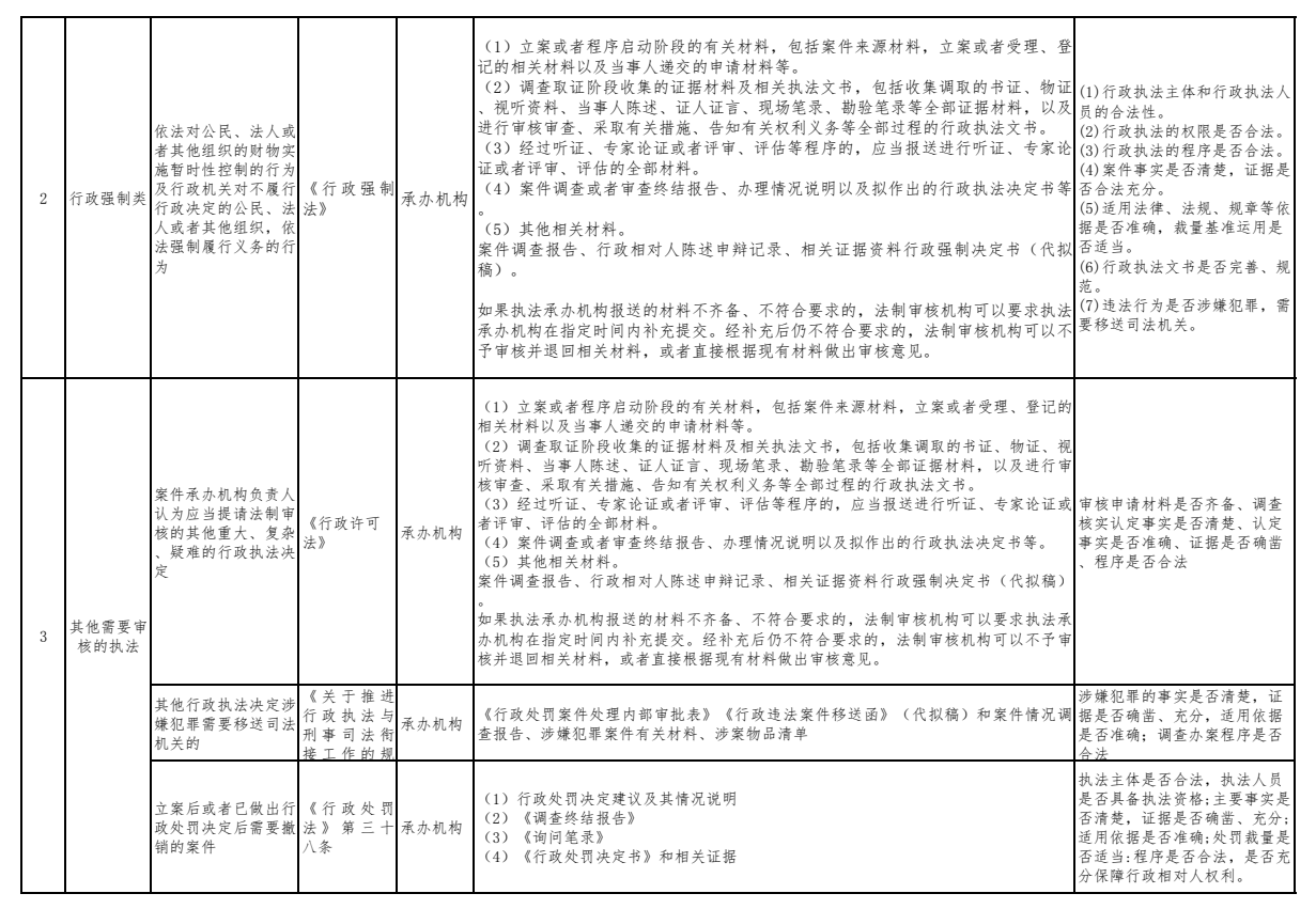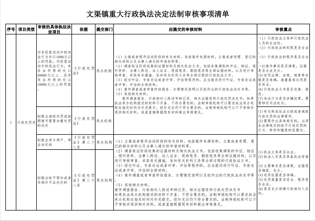 文渠镇重大行政执法决定法制审核事项清单