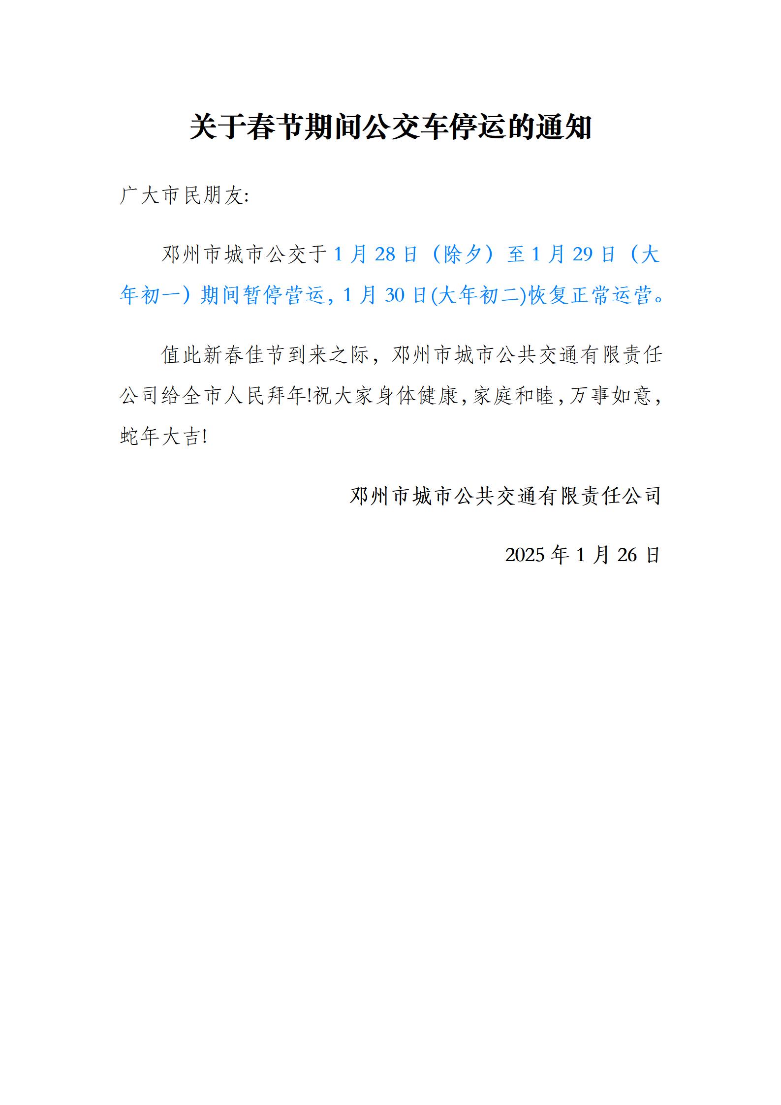 关于春节期间公交车停运的通知