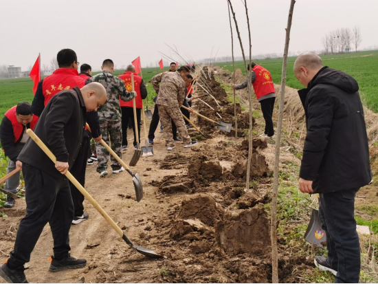 春风拂绿,万象更新,正是植树的好时节。3月12日,在第47个植树节之际,陶营镇党委组织镇妇联、镇团委、镇民兵应急连、镇退役军人学雷锋志愿服务队以及全体机关干部以“学雷锋、护生态”为主题,开展义务植树活动,以实际行动践行雷锋精神,推动陶营镇绿化建设。本次活动共种植树苗150余棵,为当地生态景观增添新绿。