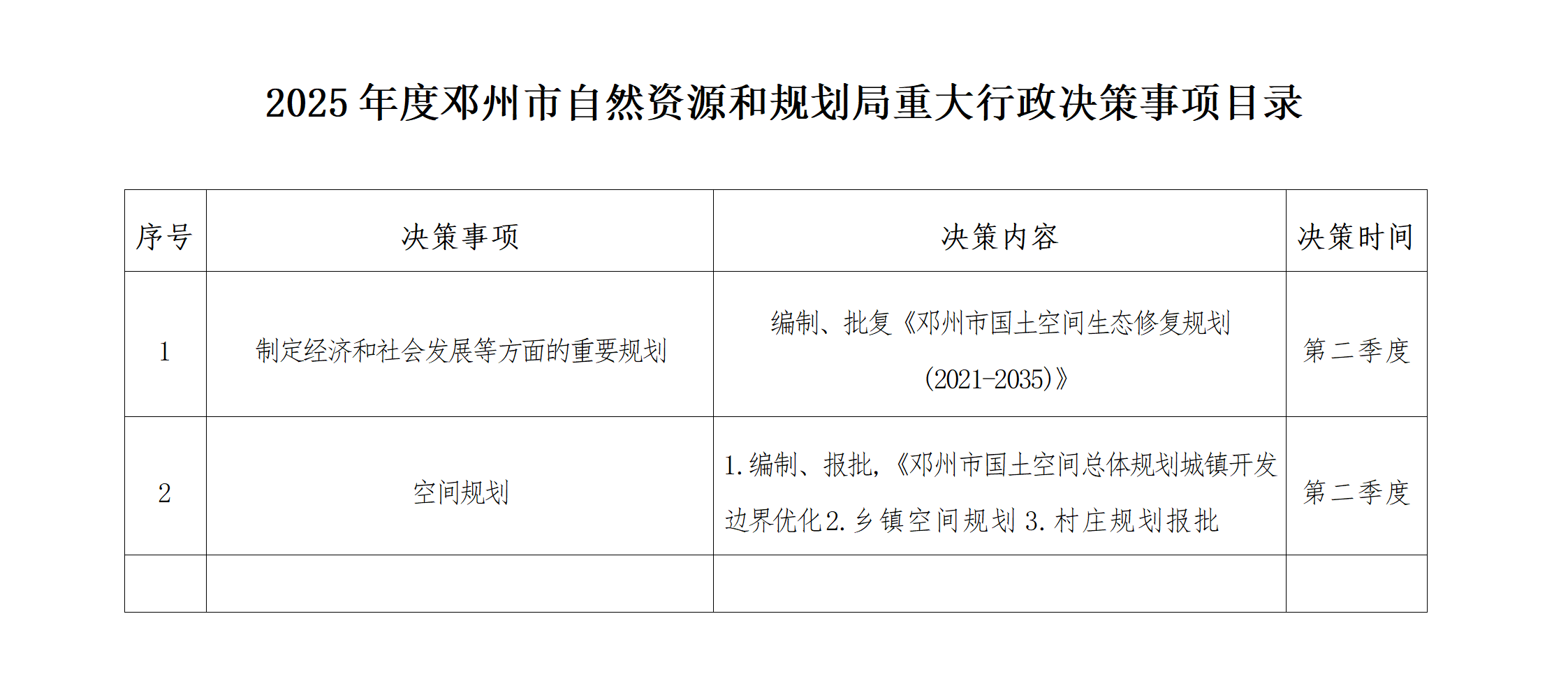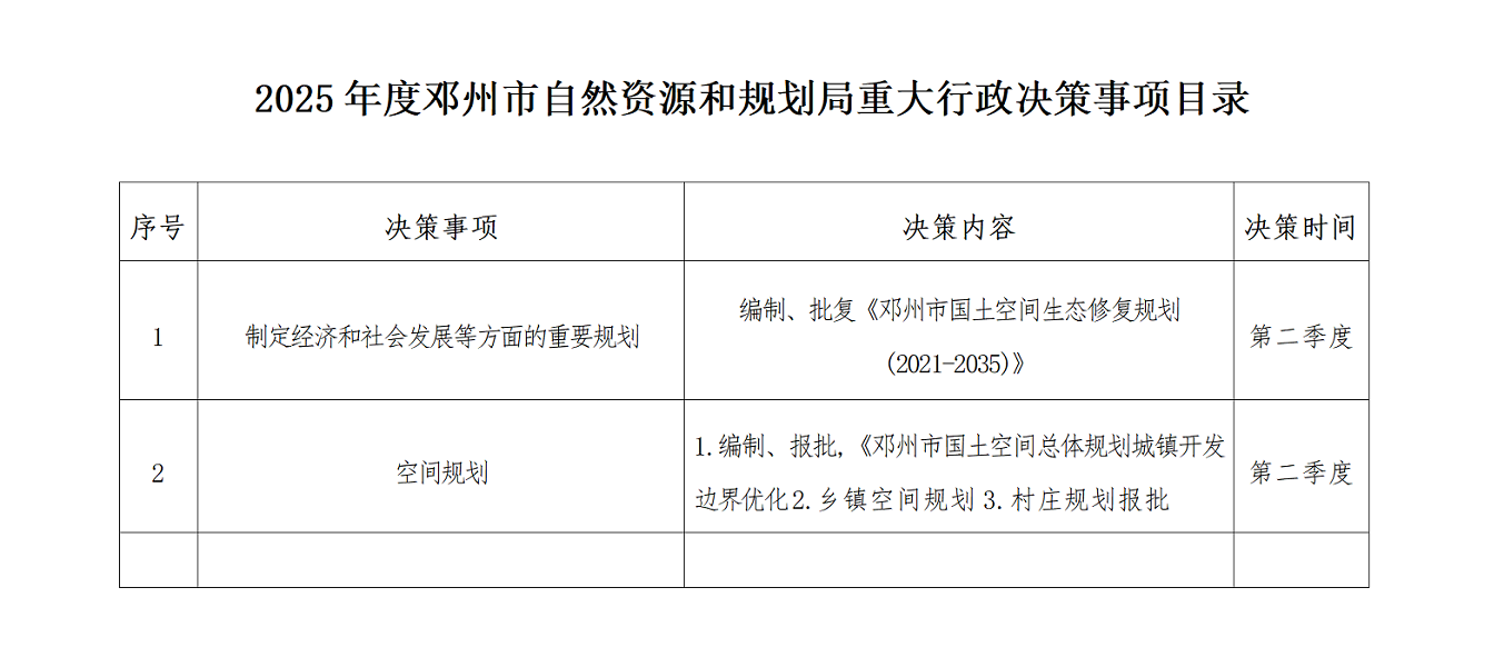 2025年度邓州市自然资源和规划局重大行政决策事项目录