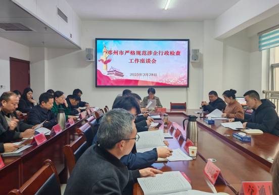 为深入贯彻《国务院办公厅关于严格规范涉企行政检查的意见》,全面落实省市关于规范涉企行政检查的工作要求,坚决遏制乱检查,切实减轻企业负担,推动我市法治化营商环境提档升级,3月28日,邓州市组织召开严格规范涉企行政检查工作座谈会,相关执法单位业务科室负责人参加会议。