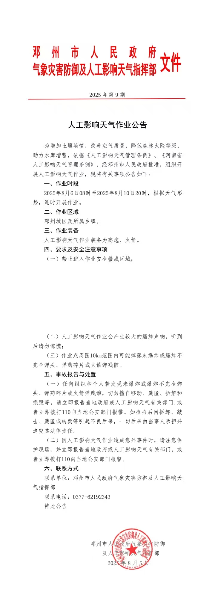 2025年人工影响天气作业公告第9期