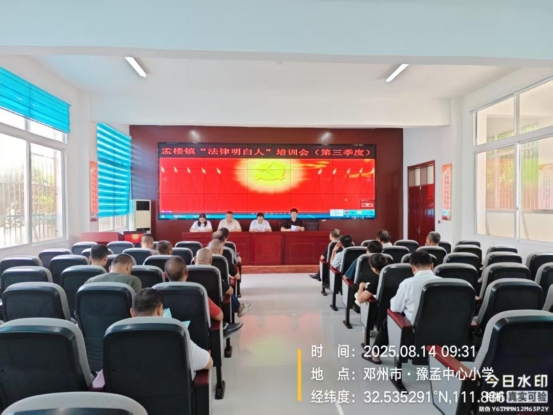 为创新发展新时代“枫桥经验”,提升基层“法律明白人”的法律素质和普法能力,8月14日,邓州市司法局孟楼司法所在孟楼镇孟楼村委会召开第三季度“法律明白人”培训会。孟楼镇管委会副主任孙宇飞、平安办主任张欣、孟楼镇村居法律顾问、花洲律师所马涛律师、孟楼司法所张永安、各村民调主任、治安主任等参会。