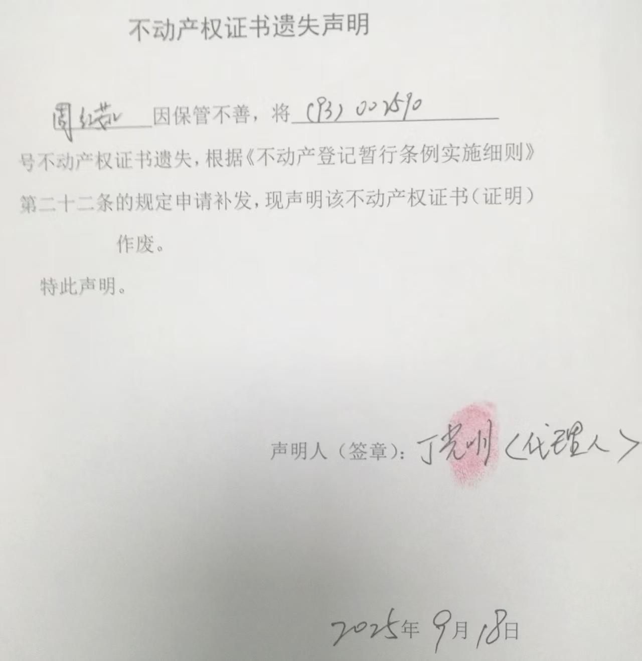 周红茹不动产权证书遗失声明
