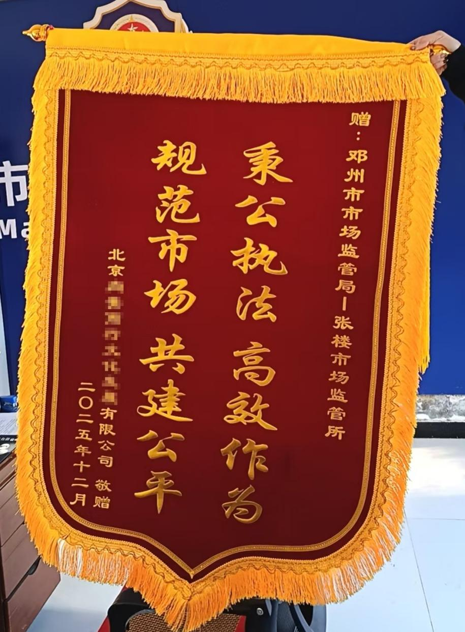 近日,张楼乡市场监督管理所收到一面写有“秉公执法 高效作为 规范市场 共建公平”的锦旗,赠送方为北京某文化发展有限公司负责人邵女士。这面锦旗不仅承载着企业的诚挚谢意,更是对市场监管所依法履职、高效服务、优化营商环境工作的充分肯定。