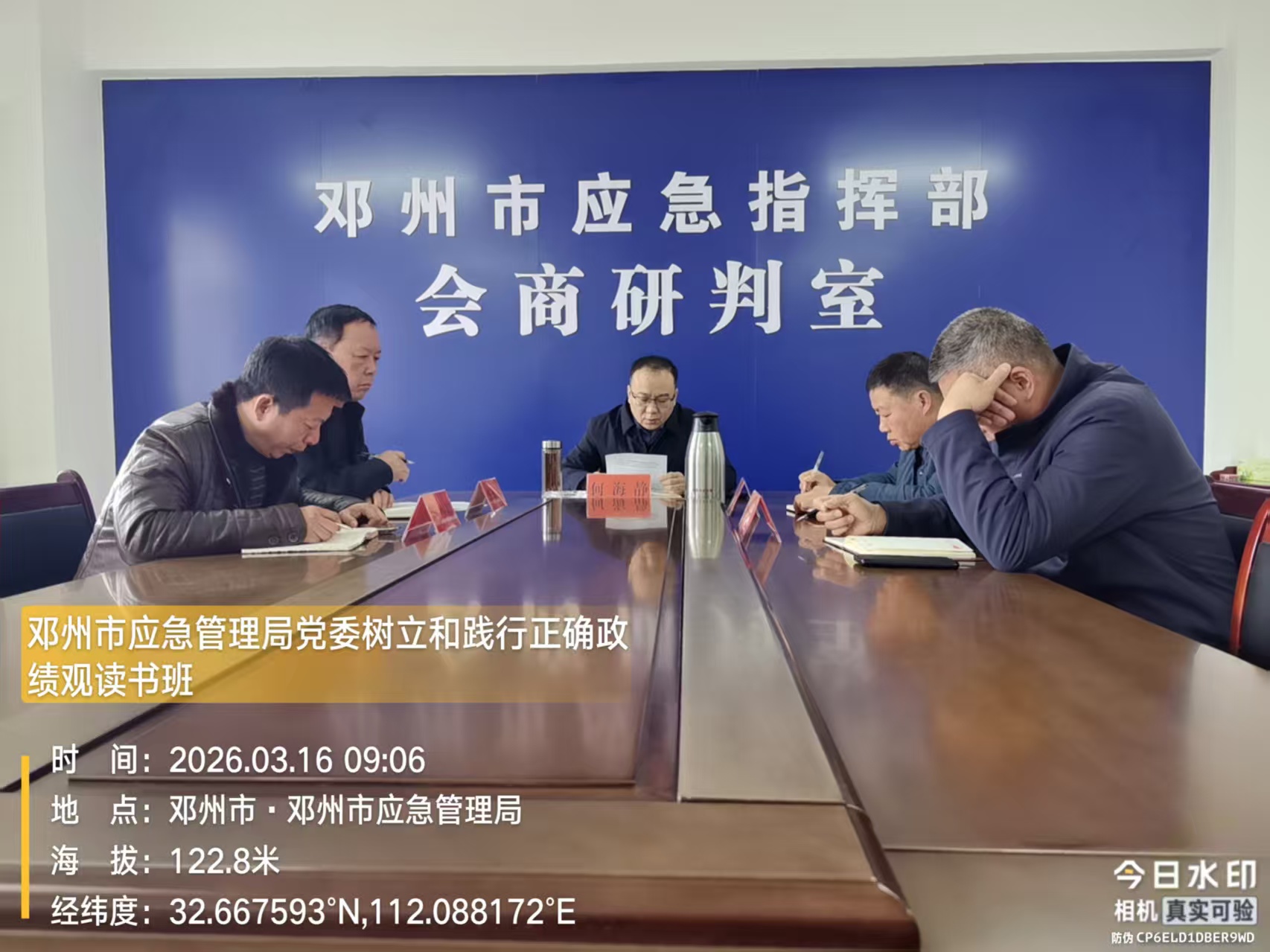 为深入贯彻落实党中央关于在全党开展树立和践行正确政绩观学习教育的决策部署,2026年3月中旬,邓州市应急管理局成功举办党委理论学习中心组2026年第3次学习暨树立和践行正确政绩观学习教育专题读书班。局党委班子成员、各科室及下属单位负责人参加学习。