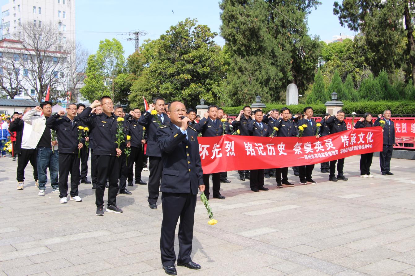 苍松翠柏掩映下的烈士陵园宁静肃穆,雄伟的革命烈士纪念碑巍然耸立。市场监管党员干部在烈士纪念碑前整齐列队,在庄严肃穆的音乐中,向烈士纪念碑敬献花篮。随后,全场肃立默哀三分钟,向为民族独立、人民解放和国家富强、人民幸福英勇献身的革命先烈致以最深切的哀思。